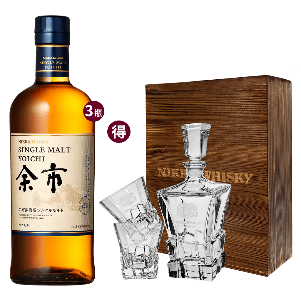 即日起,余市、宮城峽、竹鶴威士忌任選3瓶,即可獲得「NIKKA一甲威士忌酒樽組」1組!