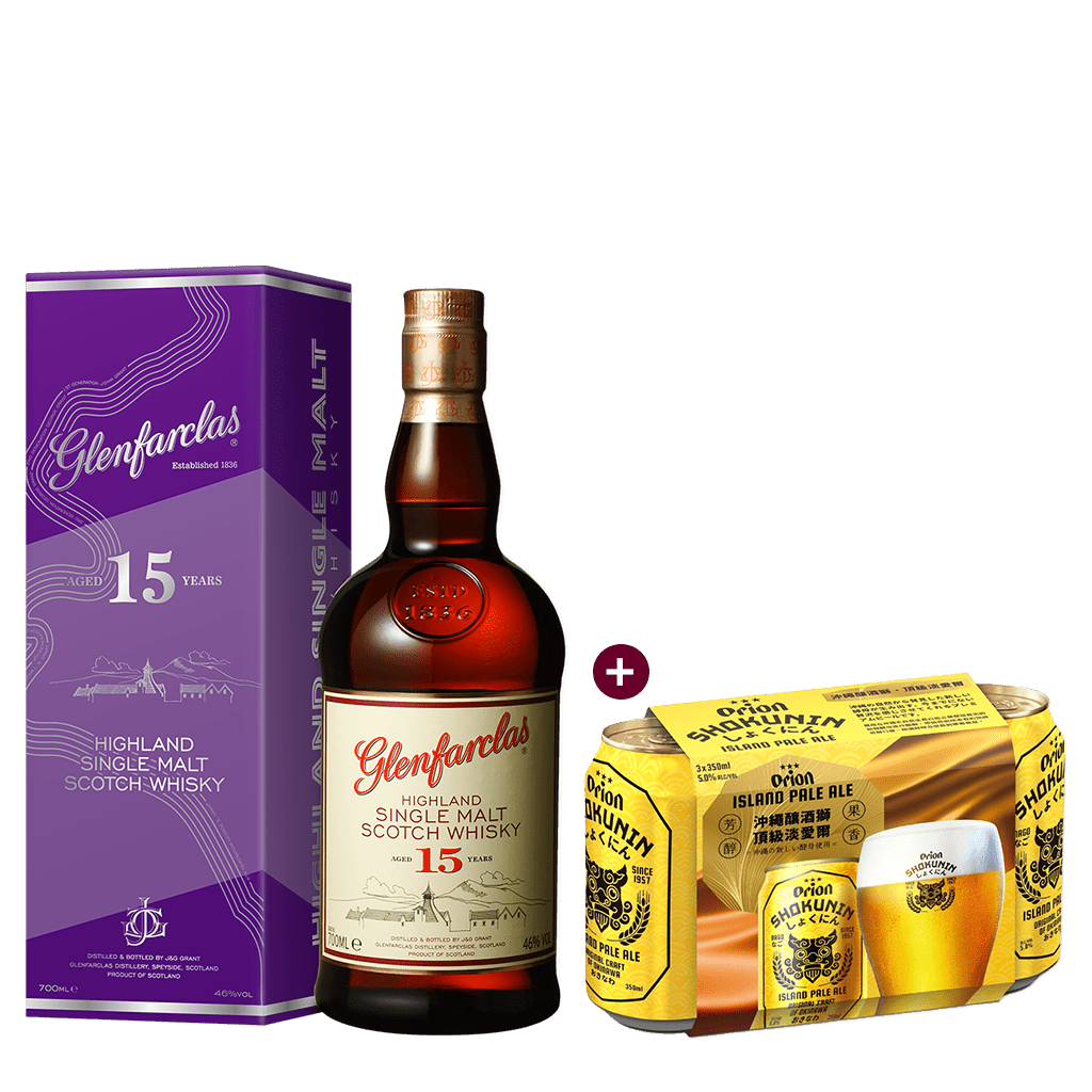 凡入手格蘭花格15年,即可獲得「ORION沖繩釀酒獅頂級淡艾爾啤酒(350ml)三入組」1組!