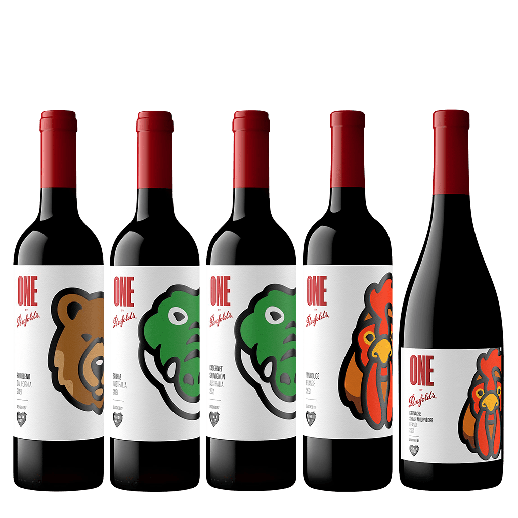 ONE by Penfolds強調每個人都是獨一無二,但又緊密相連。正如同ONE by Penfolds使用來自不同產區的葡萄果實,釀造多款來自全球知名產區的酒款。NIGO運用其標誌性風格,為One by Penfolds酒標設計了鱷魚、公雞和棕熊圖案,分別代表澳洲、法國、和美國,One by Penfolds葡萄酒的原產地。