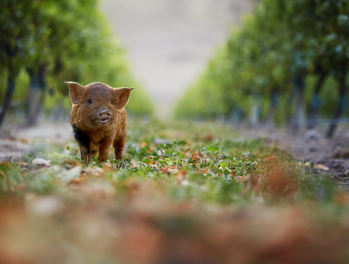 牧養1500隻身高僅兩英尺的Baby Doll寶貝羊、酷你酷你豬、跟雞,都是葡萄園天然的除草劑和施肥機,提供全年的病蟲防治服務。
