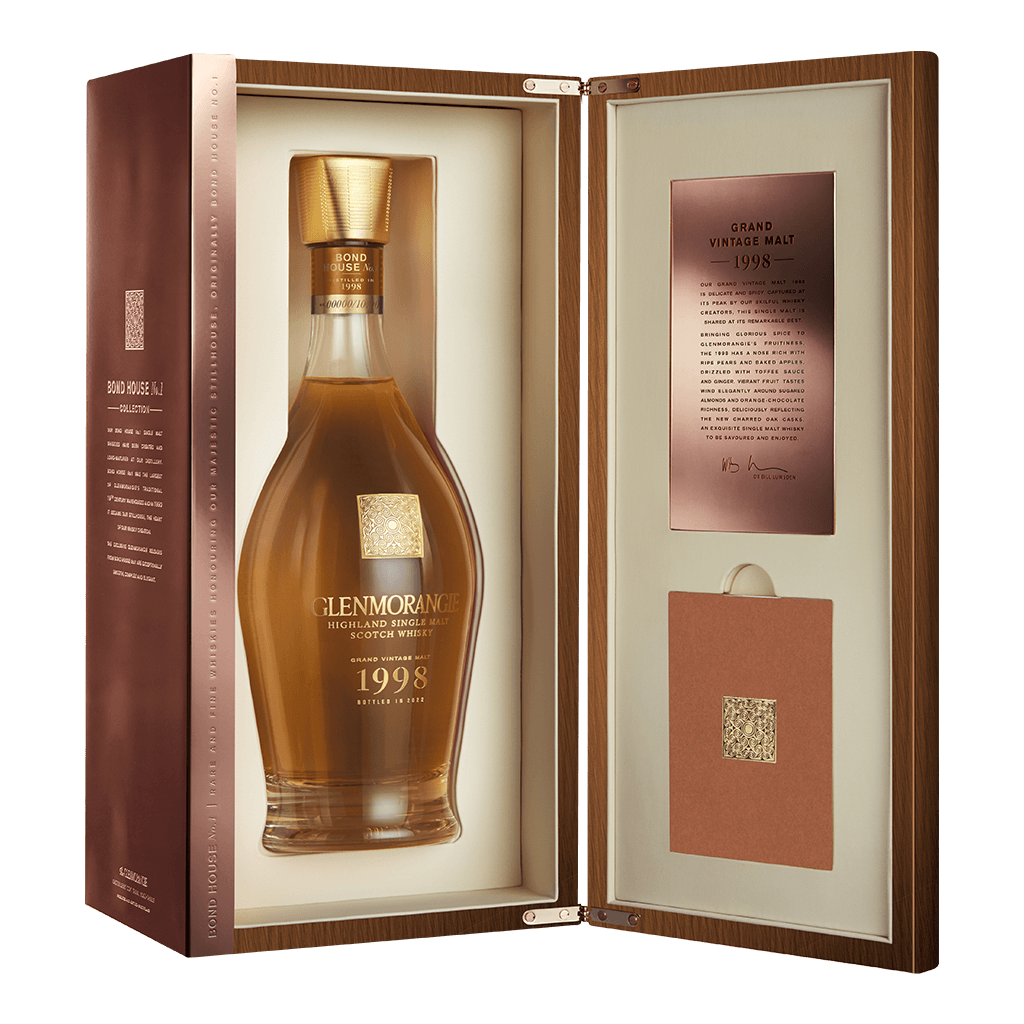 本系列的第八款-Glenmorangie Grand Vintage Malt 1998,這款23年的威士忌就像踏上了從經典波本威士忌世界到西班牙赫雷斯雪利酒酒窖的跨大西洋之旅。兩者均採用新烘烤的初生橡木,充滿活力的水果、柔滑的太妃糖和生薑是我們優雅、實驗風格的象徵。