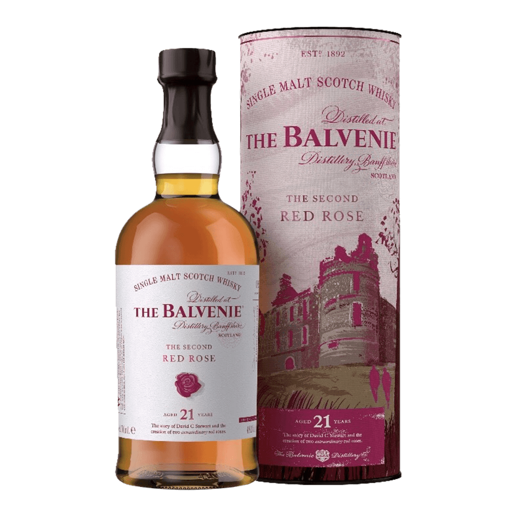 這段充滿浪漫氣息的故事,啟發百富首席調酒師大衛.史都華創作靈感,挑選陳年在美國波本桶21年的威士忌,再運用的澳洲席哈紅酒桶過桶,讓酒液呈現出玫瑰般獨特的紅暈色澤,濃郁的水果香呈現出黑莓和成熟桃子的香甜,再伴隨著橡木與黑胡椒辛香氣息沈醉其中。