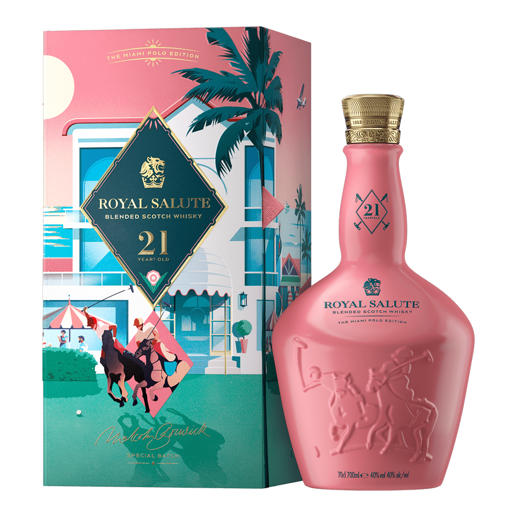 為了向這座標誌性城市以及美國這片土地致敬,皇家禮炮首席調酒師Sandy Hyslop精心創作出一款具有獨特美國風味特色的21年蘇格蘭調和式威士忌,以兩大經典的美國威士忌橡木桶過桶-初次填裝波本桶以及初次填裝裸麥桶過桶方式完成這一款威士忌。波本桶帶給酒液滑順香草和椰子香氣,讓人想起邁阿密的金色沙灘,結合裸麥桶賦予的清新草本及些許香料氣息完美交織,向邁阿密令人興奮、迷人的生活美學致敬。