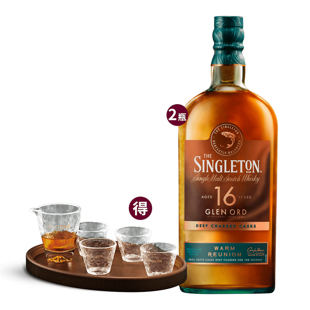 即日起,蘇格登深焙16年滿2瓶,即可獲得「限量聯名豐味勻杯組」1組!