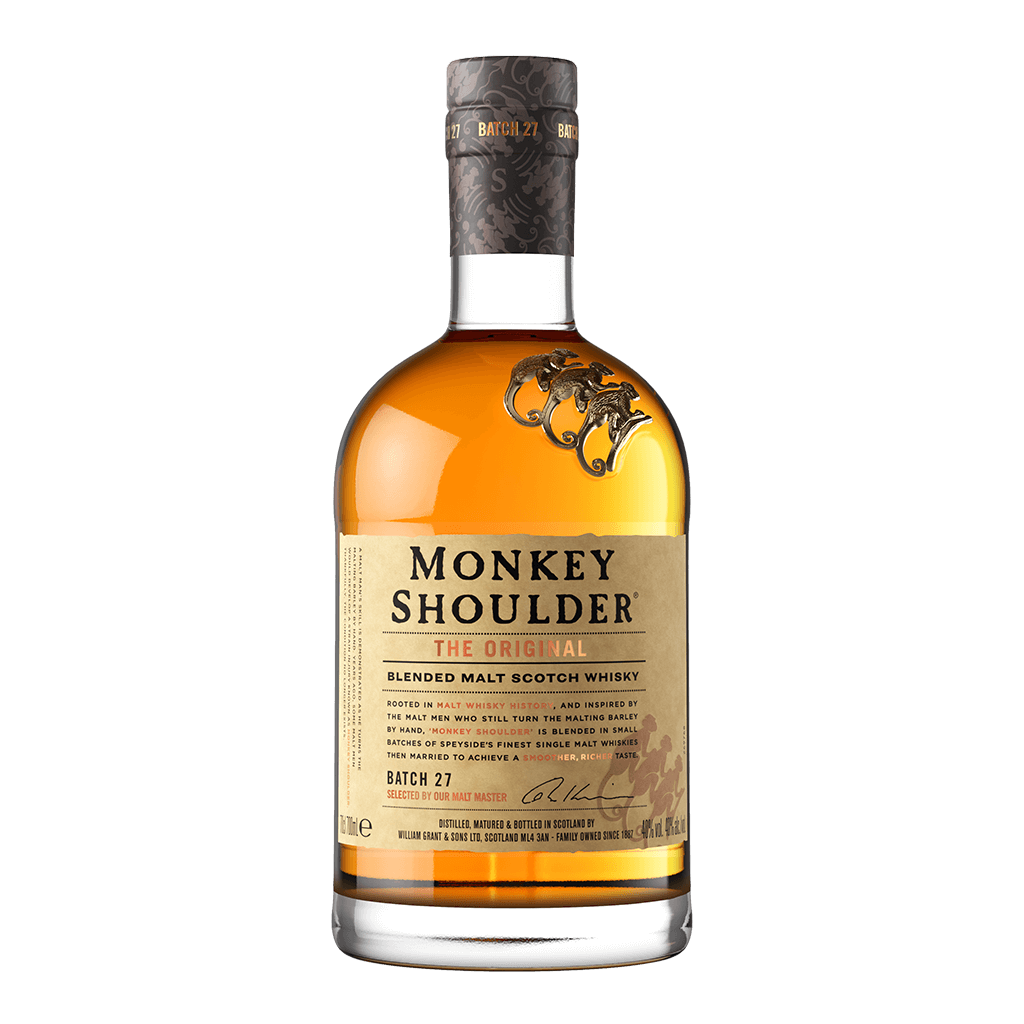 三隻猴子的名稱來自於傳統威士忌製程:酒廠中翻麥工人長時間以手工翻動發芽中的大麥,這樣辛苦的勞動使他們經常雙臂無力、下垂,於是便戲稱自己有「猴子肩膀」。