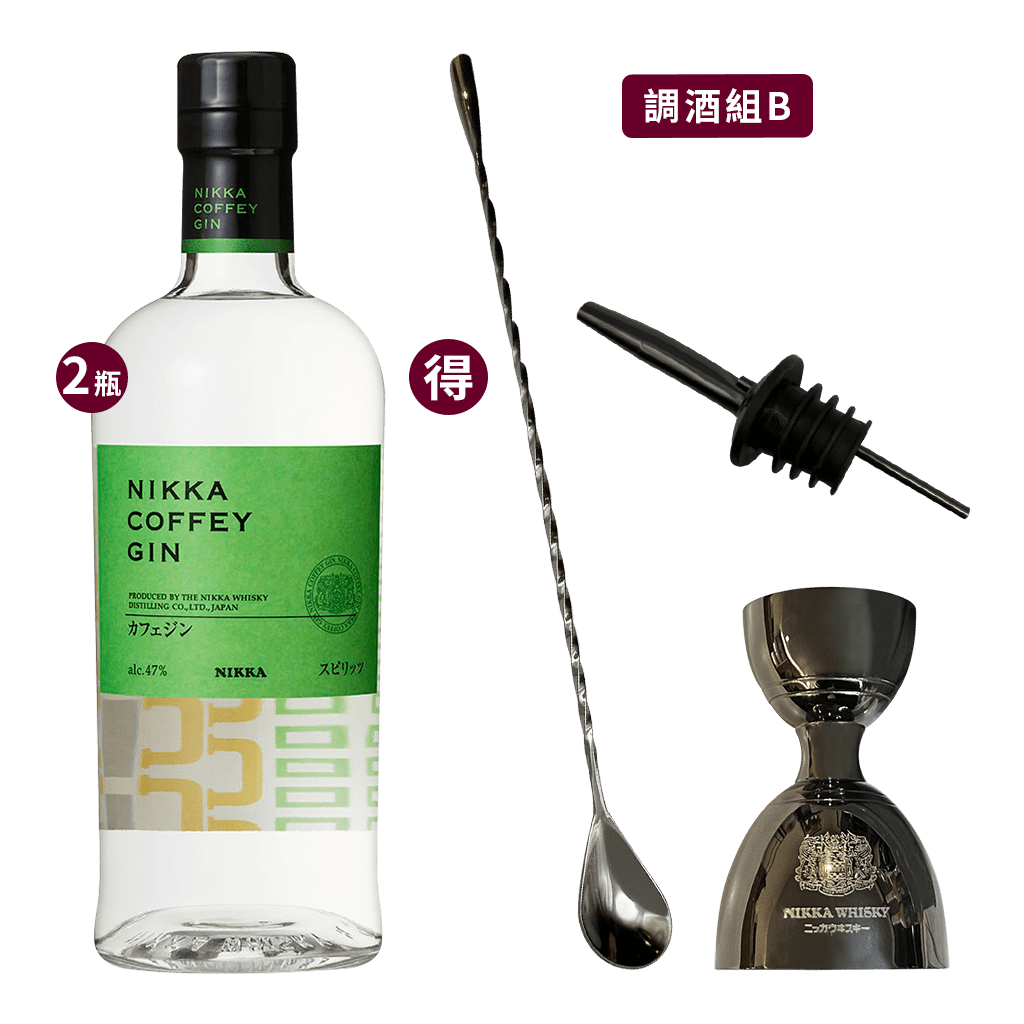 凡入手NIKKA科菲琴酒、科菲伏特加任2瓶,即可獲得「調酒組A(圖一)」或「調酒組B(圖二)」1組!