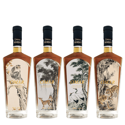精選台灣藝術史上國寶級畫家-林玉山大師4幅經典畫作,分別為《雙虎圖》(52.9%)、《猴》(52.5%)、《鹿》(52.2%)及《松鶴長年》(52.9%),以「延年玉獸」為主題(延年取長壽,玉取於林玉山),與整體包裝設計巧妙地融合。大師作品以水墨融合膠彩,兼具傳統水墨的繪畫基礎與創新的技法展現,與OMAR威士忌「堅守傳統、無畏創新」之精神不謀而合,本次跨領域聯名合作傳承台灣藝術文化、傳達人們對美好生活之想望及祝願,深具收藏投資價值。