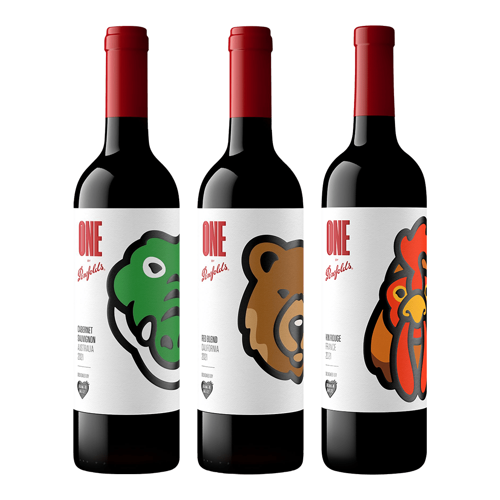 ONE by Penfolds強調每個人都是獨一無二,但又緊密相連。正如同ONE by Penfolds使用來自不同產區的葡萄果實,釀造多款來自全球知名產區的酒款。NIGO運用其標誌性風格,為One by Penfolds酒標設計了鱷魚、公雞和棕熊圖案,分別代表澳洲、法國、和美國,One by Penfolds葡萄酒的原產地。